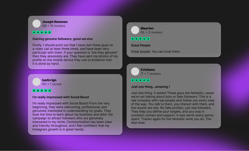 The key difference is how the service is delivered. Social Boost is a human-led, manual growth service, not an automation tool. That distinction matters for both account safety and follower quality.